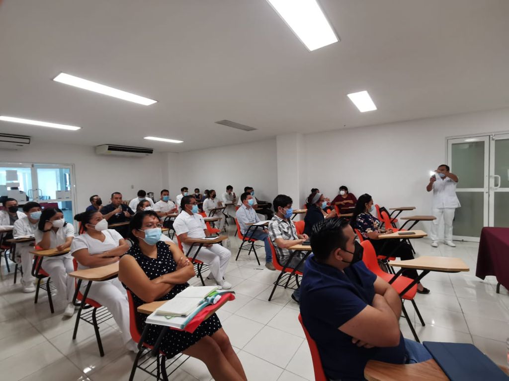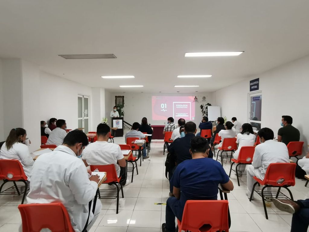 La actividad académica se desarrolló en las instalaciones del Hospital General de Carmen, dando inicio con el tema Fisiología Respiratoria, que fue impartido por el médico urgenciólogo, Rolando Mayolo Medina Medina.