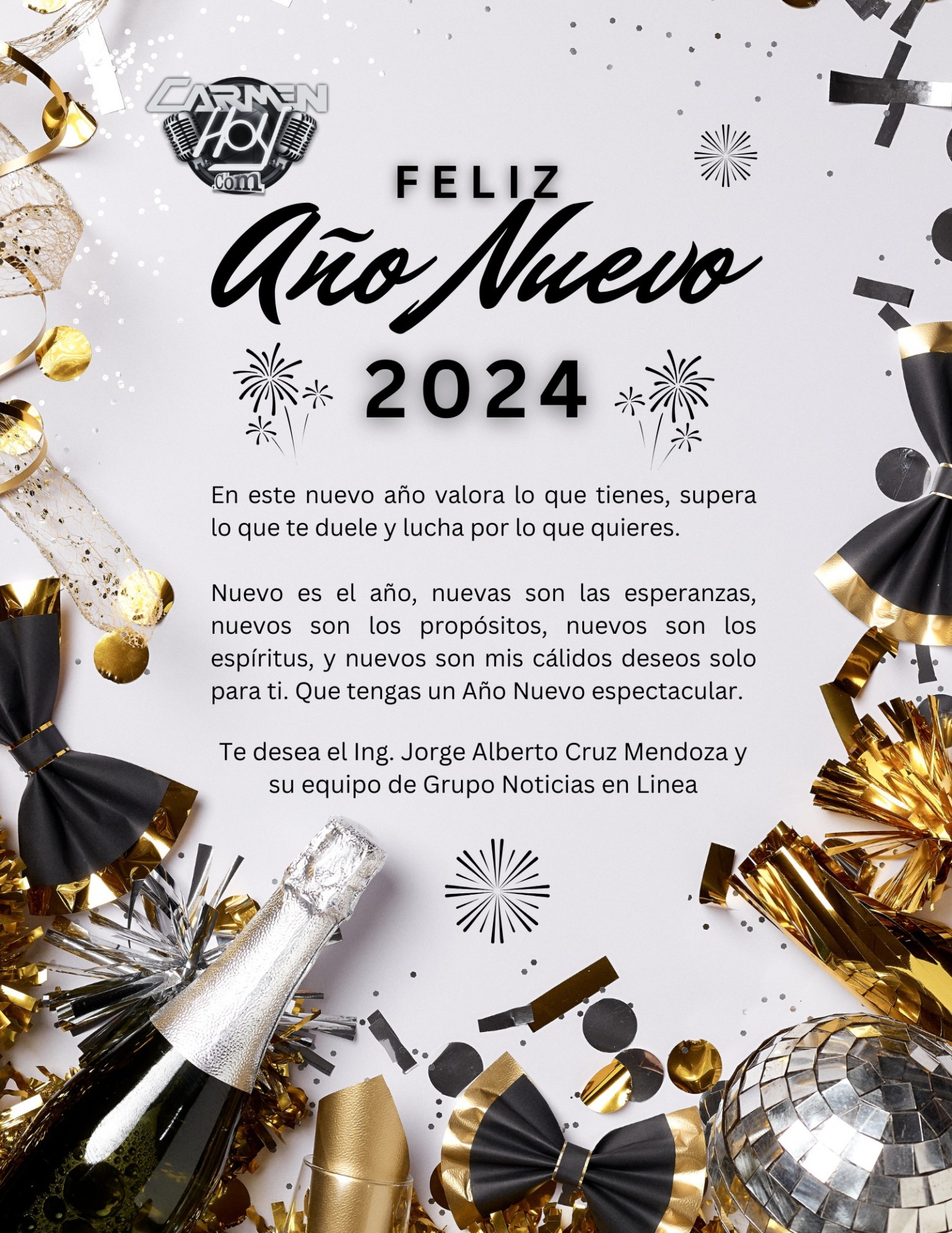 Esperamos este año sea mejor, lleno de éxitos, aventuras, nuevos retos, nuevas esperanzas, nuevos comienzos, sobretodo mucha salud…