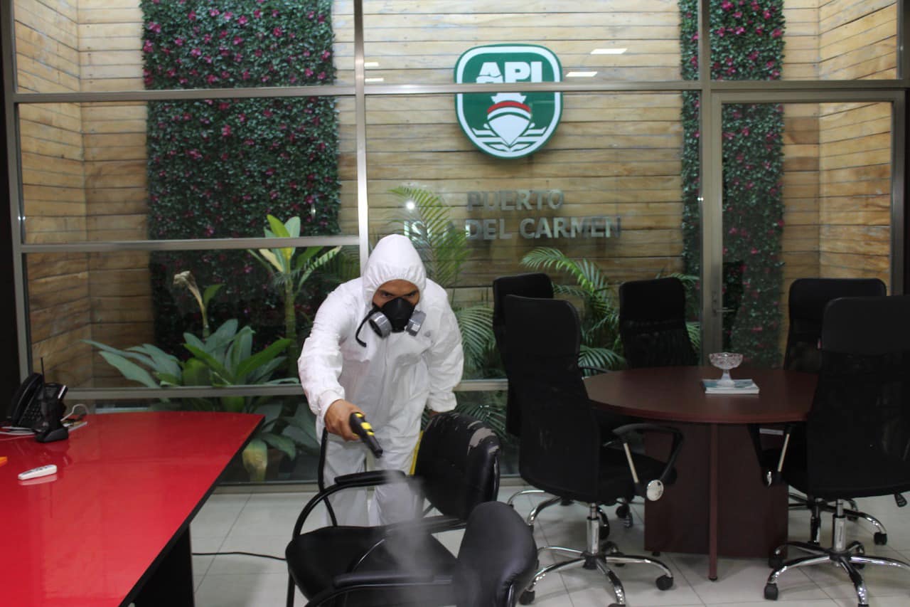 Adicionalmente, el personal realiza diariamente la desinfección de sus espacios, usa y exhorta a los usuarios a utilizar el gel antibacterial; todo ello para salvaguardar la salud del personal que continúa ofreciendo los servicios que mantienen operativo los puertos Isla del Carmen, Seybaplaya y Lerma.