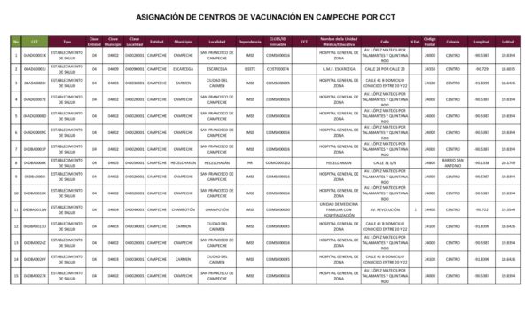 ASIGNACIÓN DE CENTROS DE VACUNACIÓN EN CAMPECHE POR CCT
