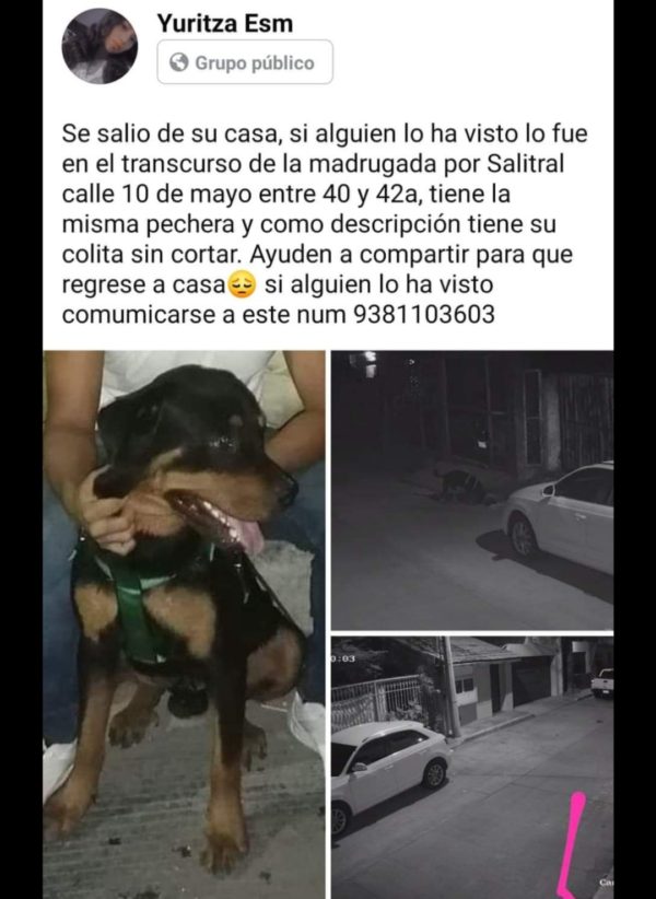 Ayuden a compartir para que regrese a casa si alguien lo ha visto comunicarse a este número 9381103603