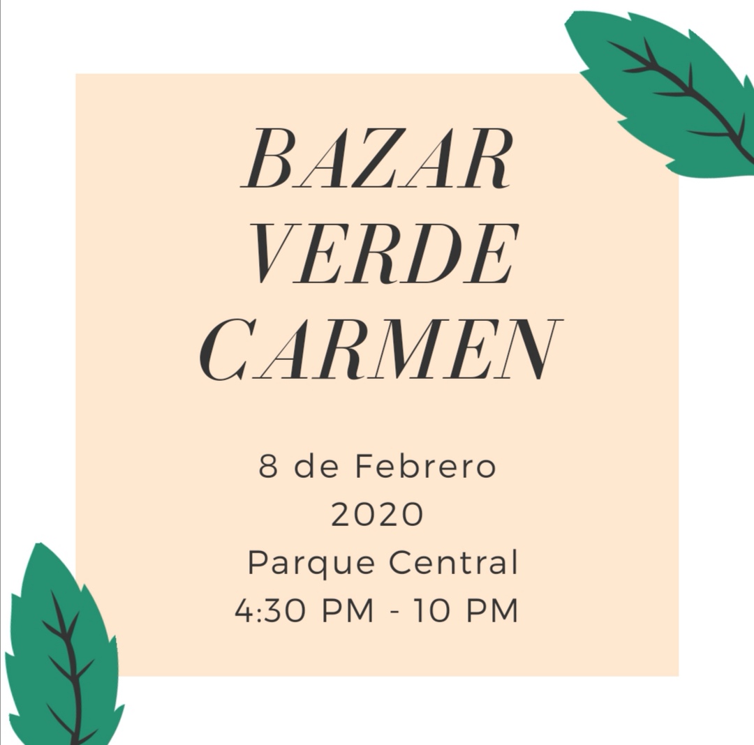 Asiste al Bazar Verde Carmen en su primera edición el día 8 de febrero en el Parque Central de 4:30pm a 10:00pm.