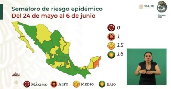 La Secretaría de Salud presentó este viernes la actualización del semáforo de riesgo COVID en México.
