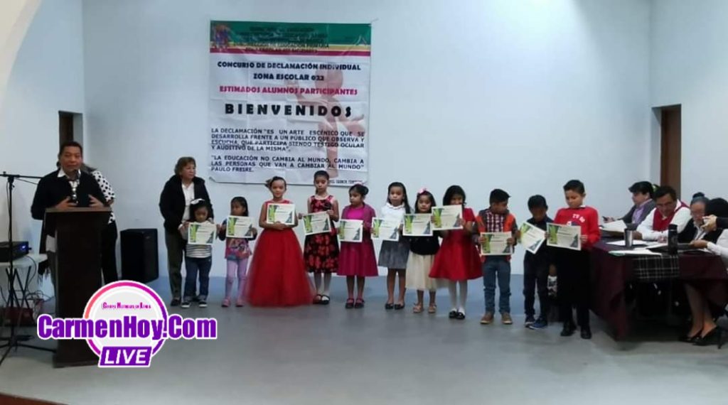 La Coordinadora del CEDE Carmen y enlace de educación básica, la Lic. Yara Teresa Notario Pérez felicita a los alumnos, padres de familia, maestros y directores, por el gran esfuerzo realizado en el Concurso de declamación individual de la zona escolar 022.