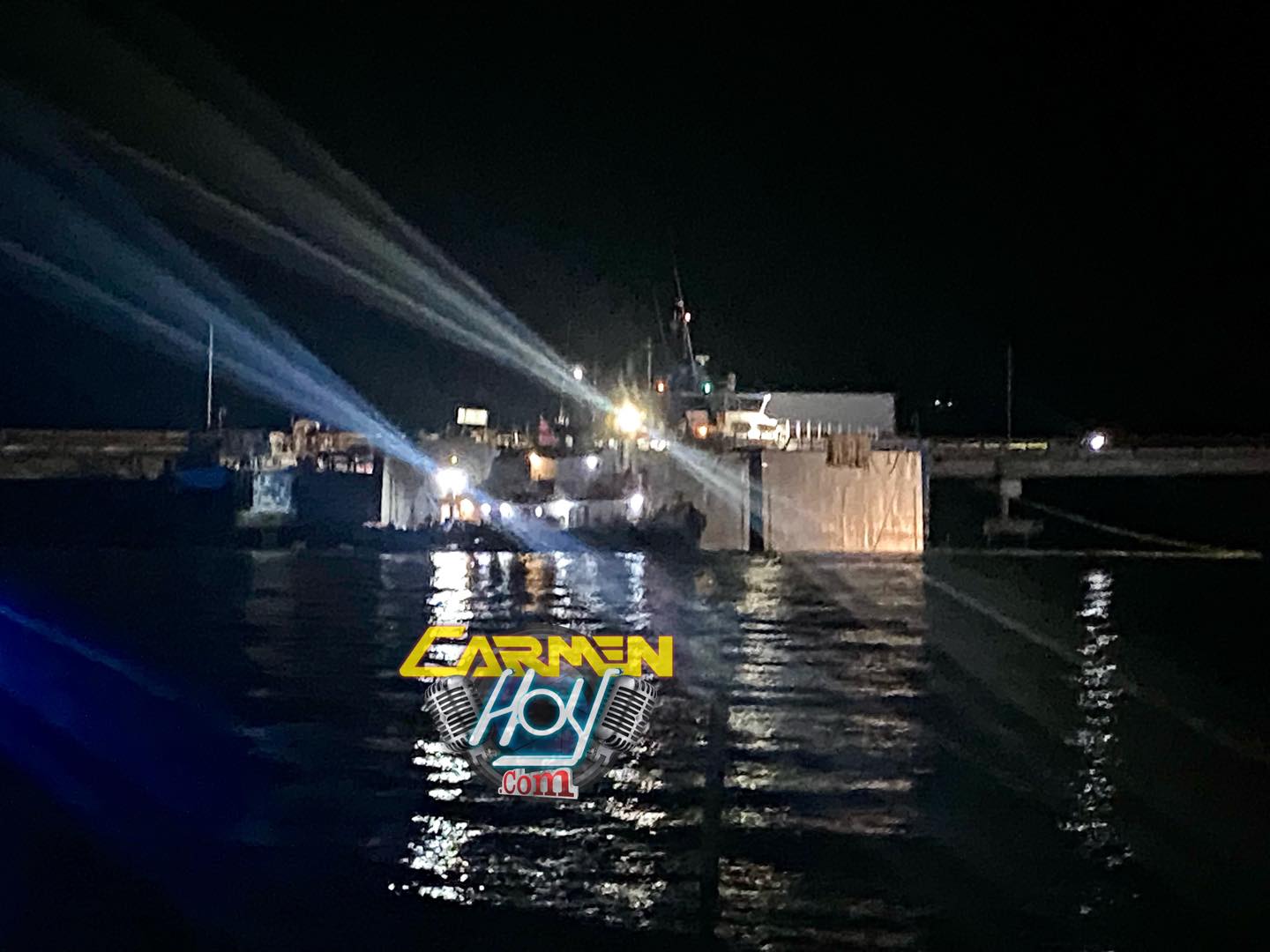 A estas horas de la noche continúan los trabajos en el Puente El Zacatal, que el día de ayer fue impactado por un Dique, el paso es muy lento para aquellos visitantes que llegan a la Isla.