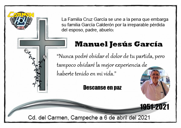 La familia Cruz García se une a la pena que embarga su familia García Calderón por la irreparable pérdida del esposo, padre, abuelo: