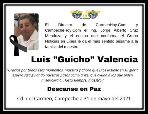 El Director de CarmenHoy.Com y CampecheHoy.Com el Ing. Jorge Alberto Cruz Mendoza y el equipo que conforma el Grupo Noticias en Línea le da el más sentido pésame a la familia del maestro: