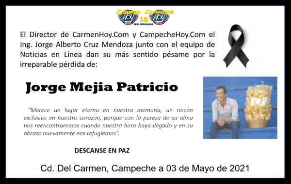 El Director de CarmenHoy.Com y CampecheHoy.Com el Ing. Jorge Alberto Cruz Mendoza junto con el equipo de Noticias en Línea dan su más sentido pésame por la irreparable pérdida de: