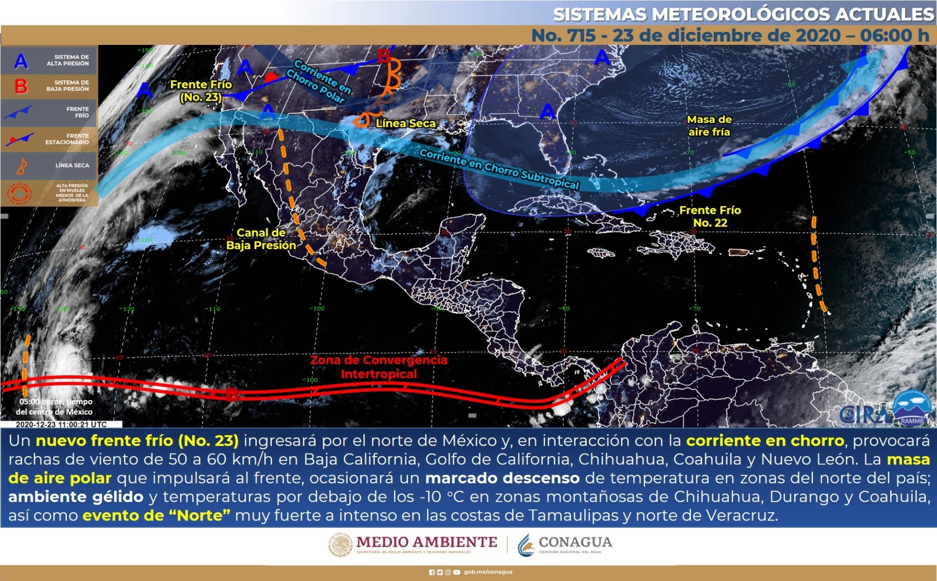 La Secretaría de Protección Civil (SEPROCI) informa a la población que este jueves ingresará a la entidad el Frente Frío número 23 dejando cambios importantes en las condiciones del clima.