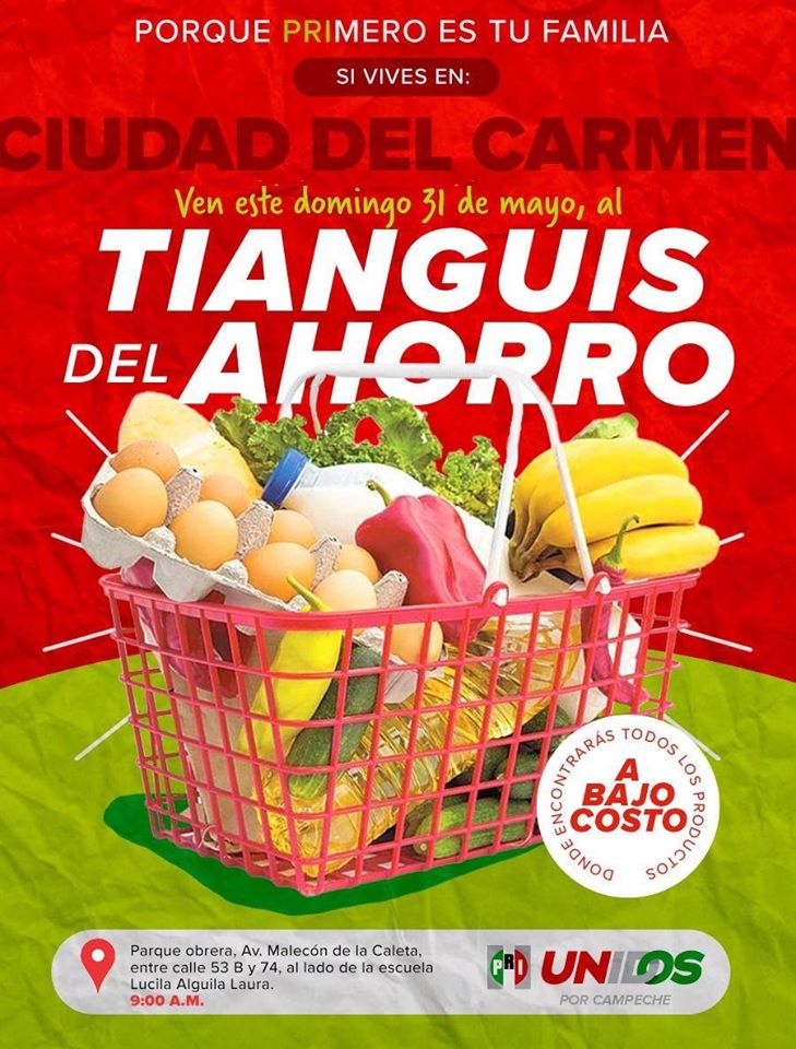 Amigos de Carmen mañana domingo estaré en el Malecón de la Caleta para apoyar con medicamentos gratuitos durante el Tianguis Del Ahorro que lleva el PRI en beneficio de la economía de las familias carmelitas.