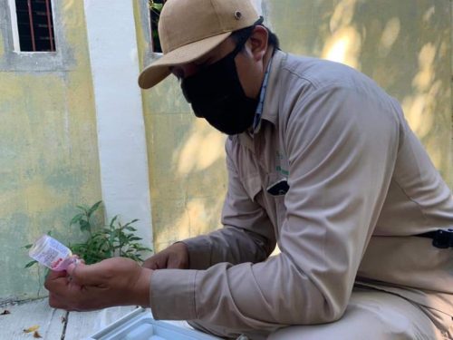 Esta mañana personal de #vectores recorre diferentes colonias de la isla, para realizar la aplicación del biológico a perros y gatos, casa por casa.