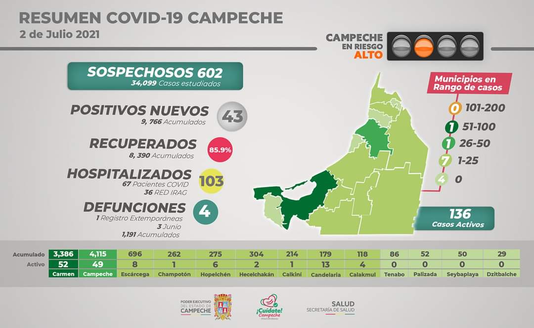 Durante esta semana, el estado se mantiene en riesgo alto que requiere responsabilidad social de todos.