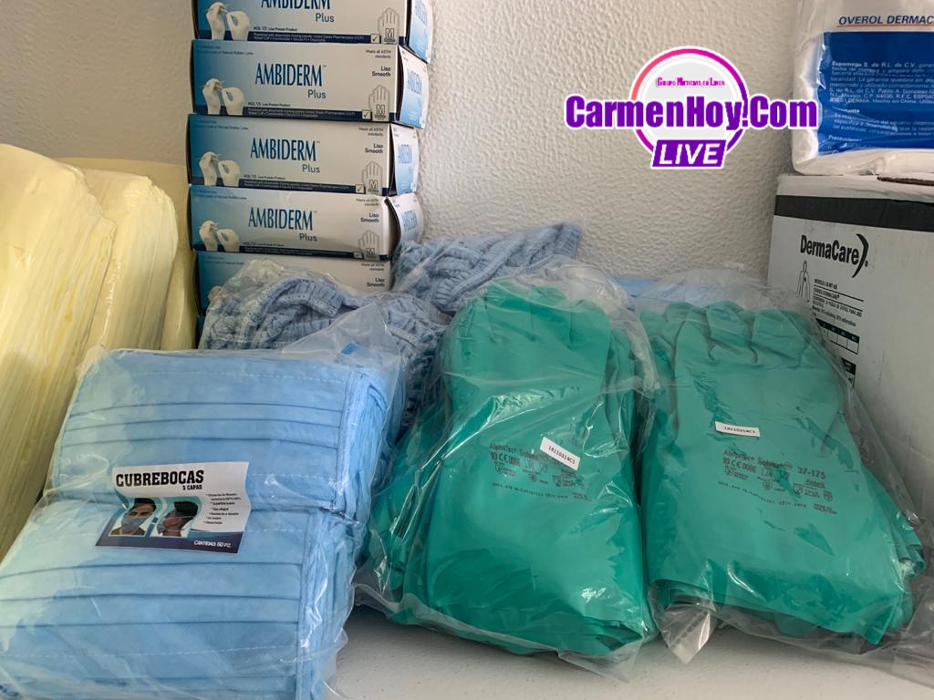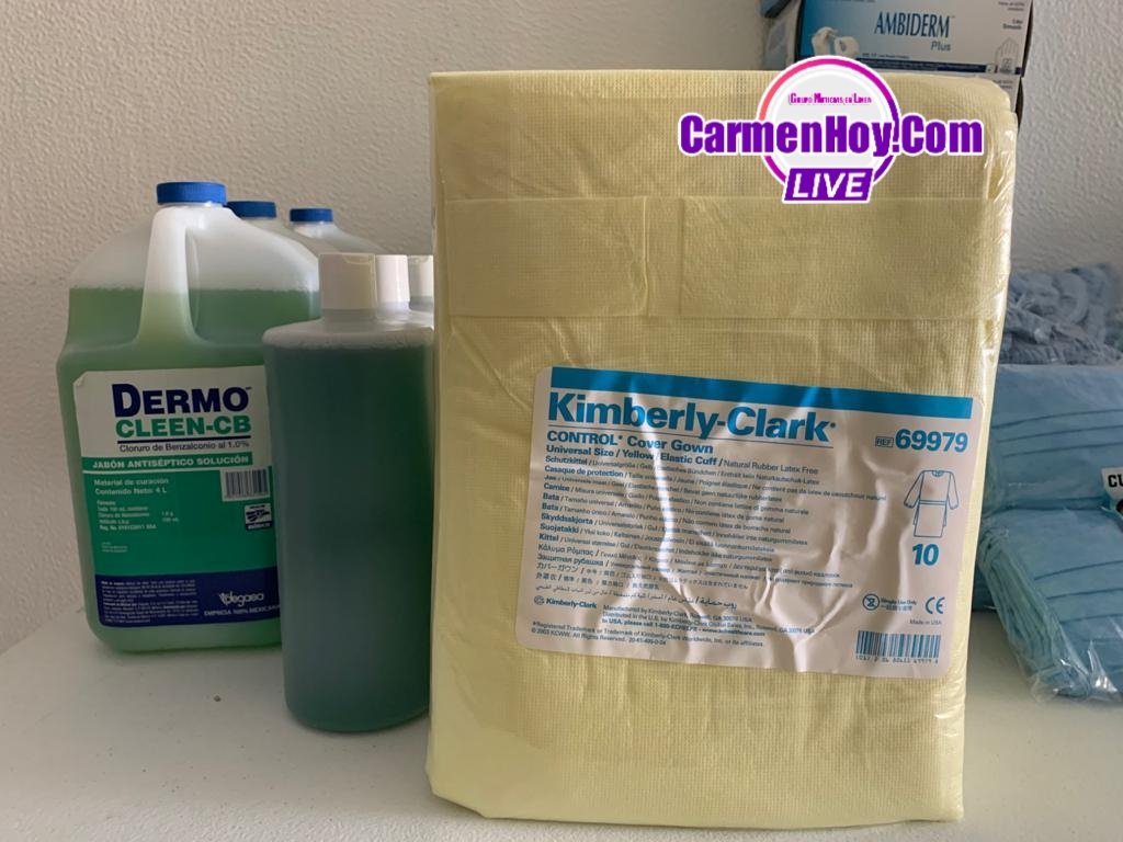 En fortalecimiento del equipo de protección personal de médicos y enfermeras del área Reconversión de COVID 19 y otros servicios médicos del Hospital General “Dra. María del Socorro Quiroga Aguilar” el Director de Atención Médica de la Secretaría de Salud del Estado, Dr. Ramón Martínez Olivares hizo entrega de galones de jabón de uso quirúrgico, gel antibacterial y gel antiséptico, paquetes de batas quirúrgicas, caja de googles, cajas de toallas de papel para secado de mano, así como cajas de guantes para cirugías, gorros para pacientes y personal médico, cajas de protector respiratorios, paquetes de cubrebocas, caretas, paquetes de overoles, cajas de guantes de nitrolo y paquetes de batas desechables.