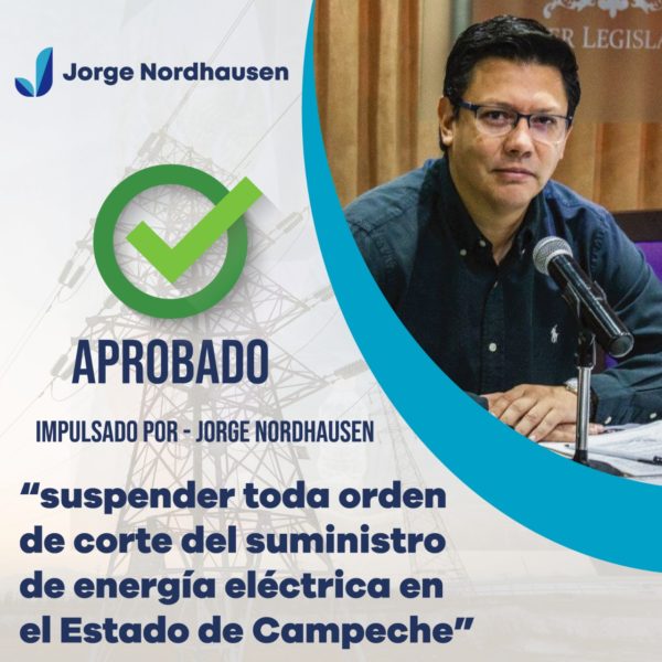 El punto de acuerdo presentado por Nordhausen Carrizales el día 26 del mes de mayo consiste en “PRIMERO.- Se exhorta a la Comisión Federal de Electricidad a que de manera urgente e inmediata suspenda toda orden de corte del suministro de energía eléctrica en el Estado de Campeche”.
