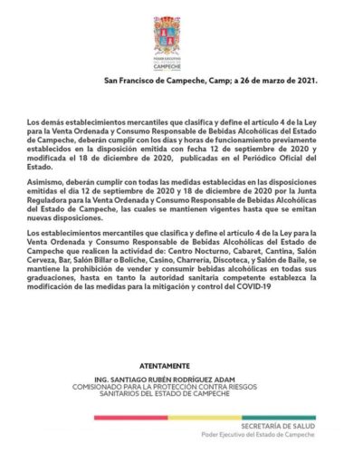 Dan a conocer que los expendios de alcohol en la ciudad de #Campeche ampliaron su horario para la venta de su producto, ahora el horario se extiende hasta el día sábado hasta las 19:00 horas.