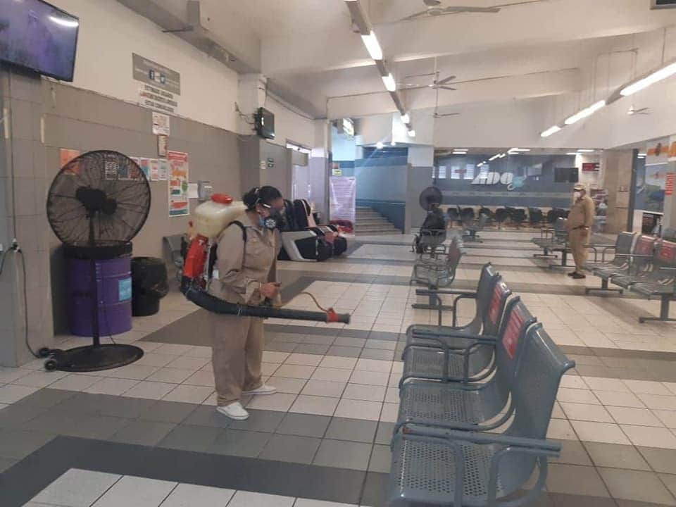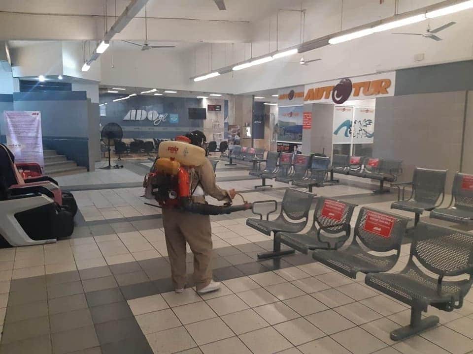 Desinfección y fumigación de las instalaciones de la Central de Autobuses en Ciudad del Carmen.