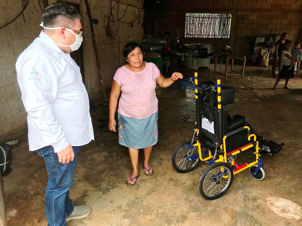 De la misma forma en la cabecera municipal de Hecelchakán, así como en las comunidades de Pomuch, Dzitnup y San Vicente Cumpich, fueron entregados directamente a los beneficiarios tres sillas de ruedas estándar y dos sillas PCI; en Tenabo se entregaron nueve sillas de ruedas estándar, seis bastones, dos pares de muletas, cuatro andaderas y una silla PCI.