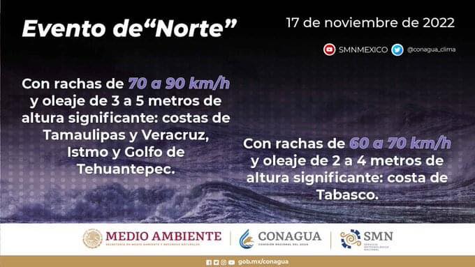 El ambiente será cálido a caluroso durante el día y templado a cálido al amanecer. Viento de dirección noreste de 20 a 30 km/h y rachas mayores a 45 km/h en costas.