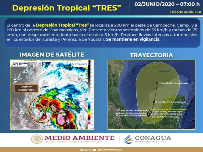Ubicación y trayectoria actual de la DepresiónTropical Tres.