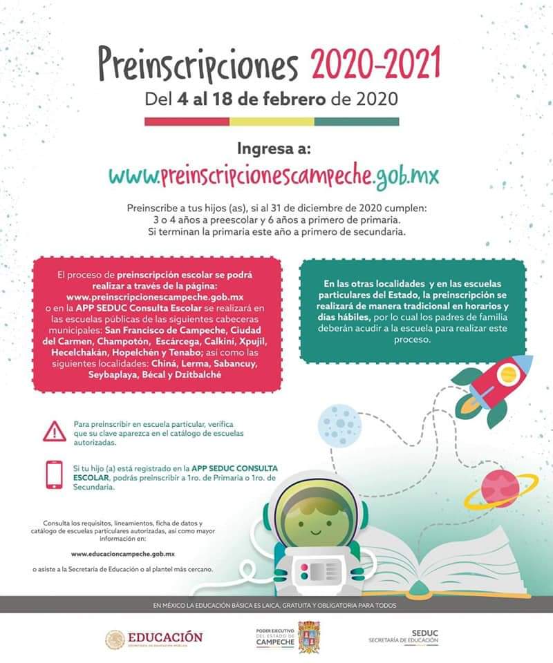 La Seduc brinda a todos los padres de familia cuyos hijos estén por entrar al nivel básico a informarse de las fechas para ingresar a la plataforma de preinscripciones