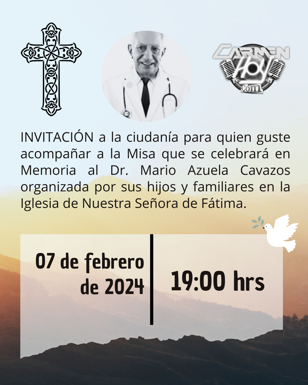 Hacen una atenta INVITACIÓN a la ciudanía para quien guste acompañar a la Misa que se celebrará en Memoria al: