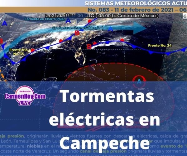 La península de Yucatán tendría un fin de semana con tormentas eléctricas de fuertes a muy fuertes, que estarían acompañas de rachas de viento, turbonadas, posibles trombas marinas, así como lluvias muy fuertes.