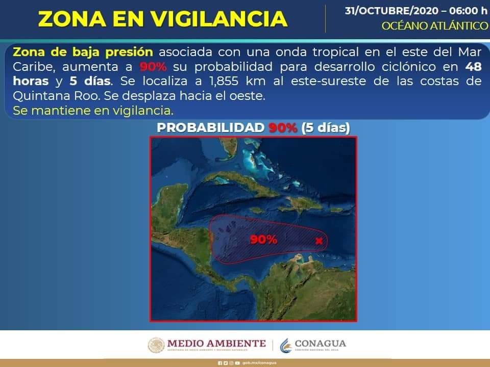 El sistema frontal #9 ocasionarán lluvias muy fuertes en la Península de Yucatán y la Onda Tropical #43 en el sur y sureste del país.