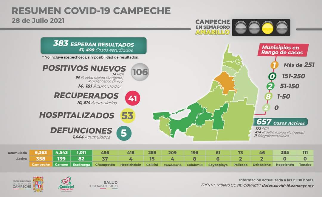De acuerdo a los criterios y parámetros actualizados del riesgo epidémico, en el reporte COVID-19 de este día se informa: