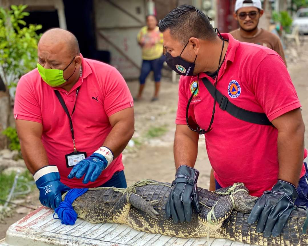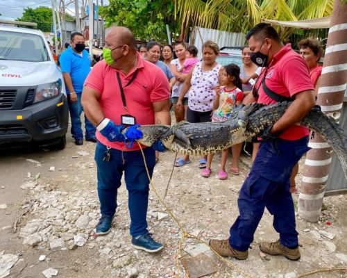 Retiran lagarto en predio de la 23 de julio