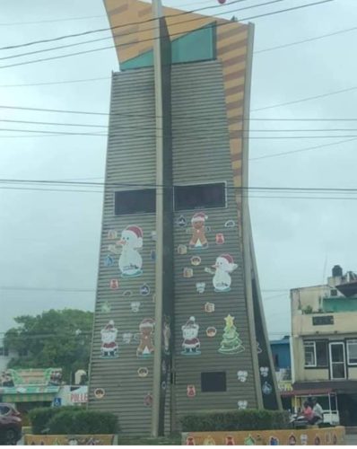 Luego de la polémica desatada en redes sociales por las pegatinas que fueron colocadas en el reloj de las tres caras, se supo que la empresa Servicios y Suministros SEAGA es la encargada de adornar está glorieta.