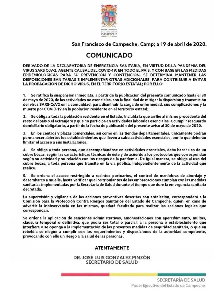 Toda persona que se encuentre en la vía pública deberá apartir de la publicación de este comunicado (19/Abril/2020) portar cubrebocas, sin distinción de la actividad que realice. ( Punto Número 4 Del Comunicado).
