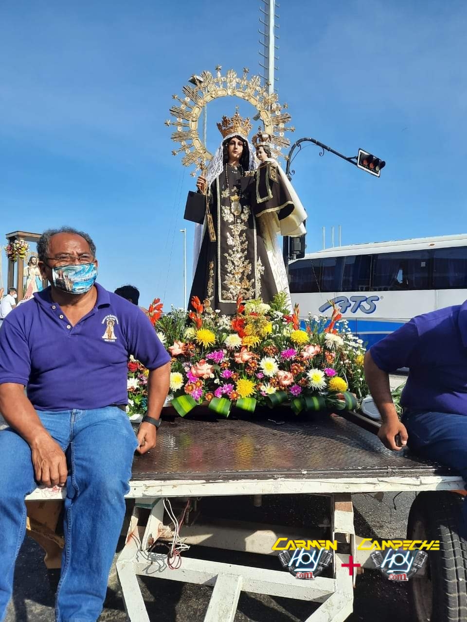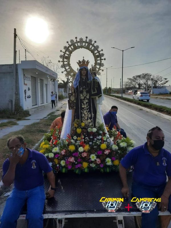 CHAMPOTÓN. – Hoy después de haber concluido la Misa de 7:00 a.m. la imagen peregrina de Nuestra Señora del Carmen, junto con la del Señor de la Misericordia, recorrió las principales calles del puerto de Champotón, para de esa manera concluir su visita a este Decanato.