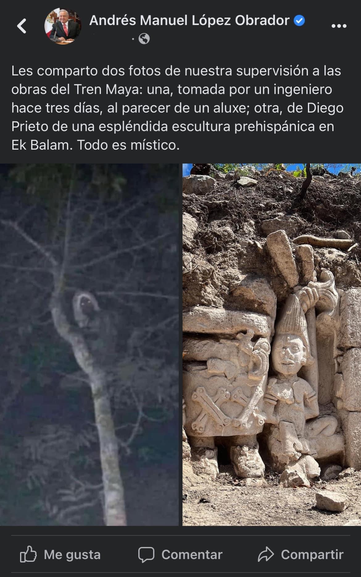 Asegura López Obrador que apareció un aluxe en obras del Tren Maya pero la foto es de Nuevo León