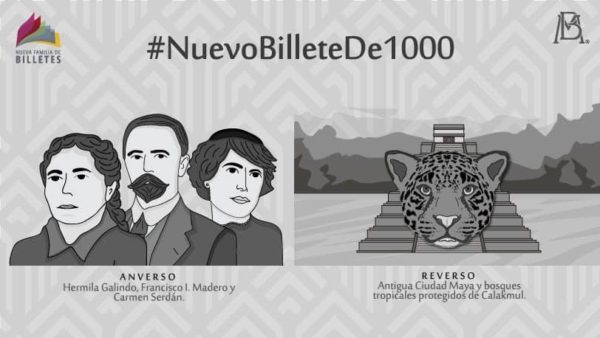 En el segundo semestre de 2020 se pondrá en circulación el #NuevoBilleteDe1000 pesos alusivo a la Revolución Mexicana, en el que aparecerán Hermila Galindo, Francisco I. Madero y Carmen Serdán.