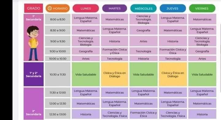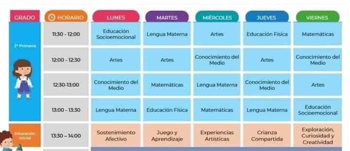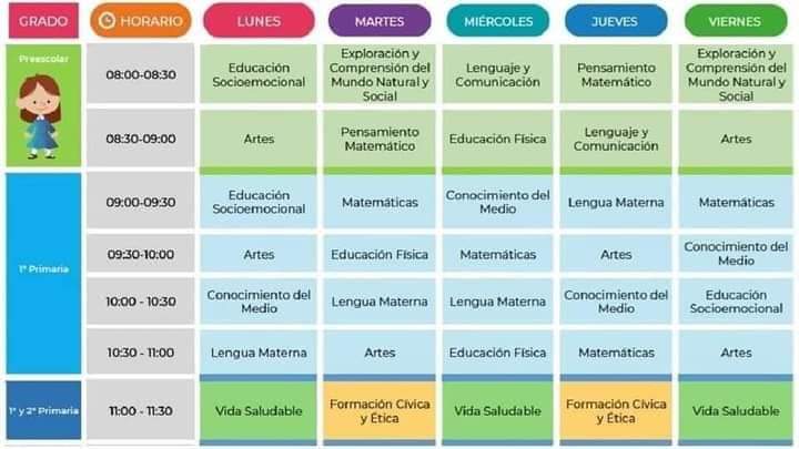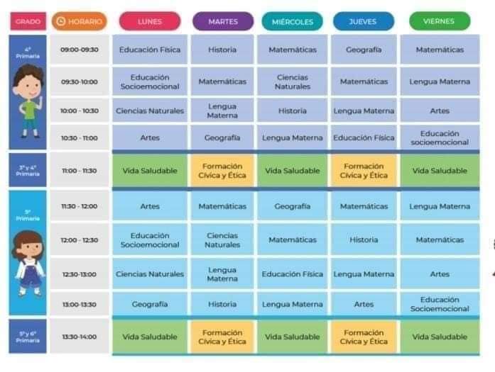 Horarios de todos los grados, solo nivel básico.