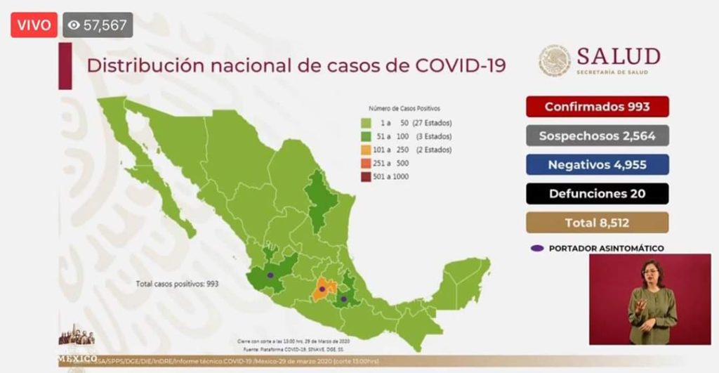 MÉXICO LLEGA A LOS 993 CASOS CONFIRMADOS DE CORONAVIRUS
