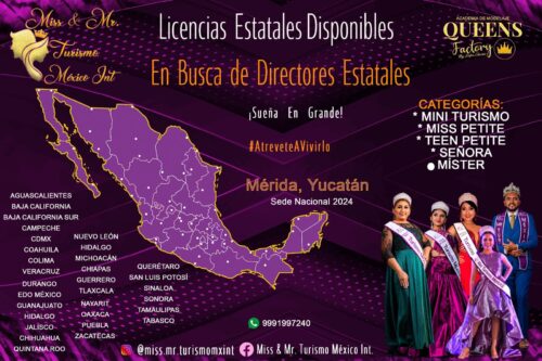 La Organización Miss & Mr. Turismo México Int. Les informa que ya cuenta con licencias Estatales rumbo a su Edición 2024.