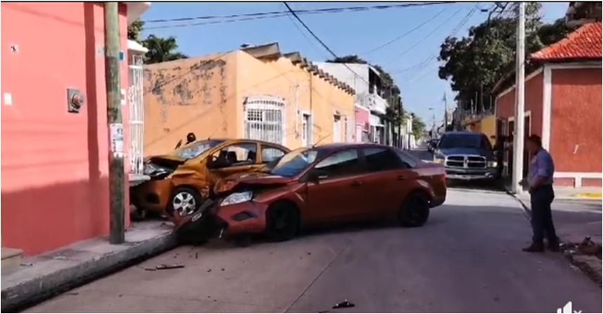 Fuerte choque entre dos autos esta mañana en la calle 30 por 21 colonia Guanal.