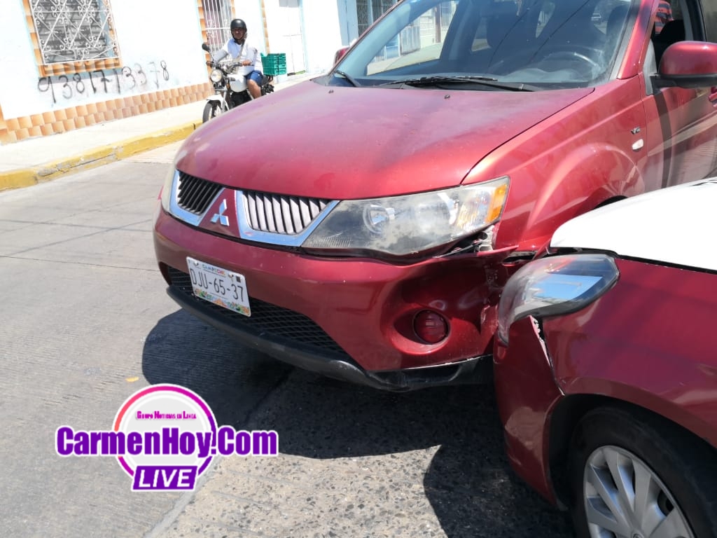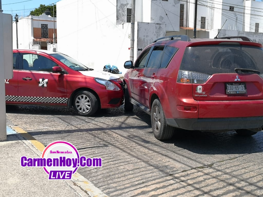 Daños de regular cuantía y un gran susto se llevaron los conductores de ambas unidades involucradas en un choque, esto sobre la calle 50 entre 31 C de la colonia petrolera, según la versión del taxista el circulaba sobre la calle 31 C pero al intentar dar vuelta a la derecha para reincorporarse a la calle 50 la inexperta conductora de una camioneta Mitsubishi roja con placas de circulación DJU-65-37 del Estado de Campeche al salir en sentido contrario impactó a la unidad de taxi.