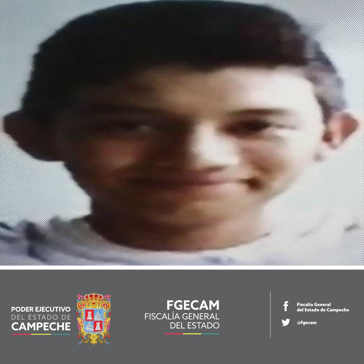La Fiscalía General del Estado de Campeche (FGECAM) solicita el apoyo de la ciudadanía para que coadyuven en la localización de Alexis Eliasin Olán González, quien la noche del domingo fue visto por última vez.