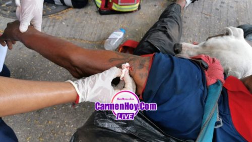 El tan ya conocido indigente de nombre Aladino esta mañana fue apuñalado en el brazo izquierdo, terminando con una herida penetrante por arma blanca, según la versión de testigos, discutía con otro indigente por su mascota que se le aventó.