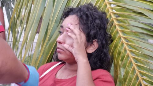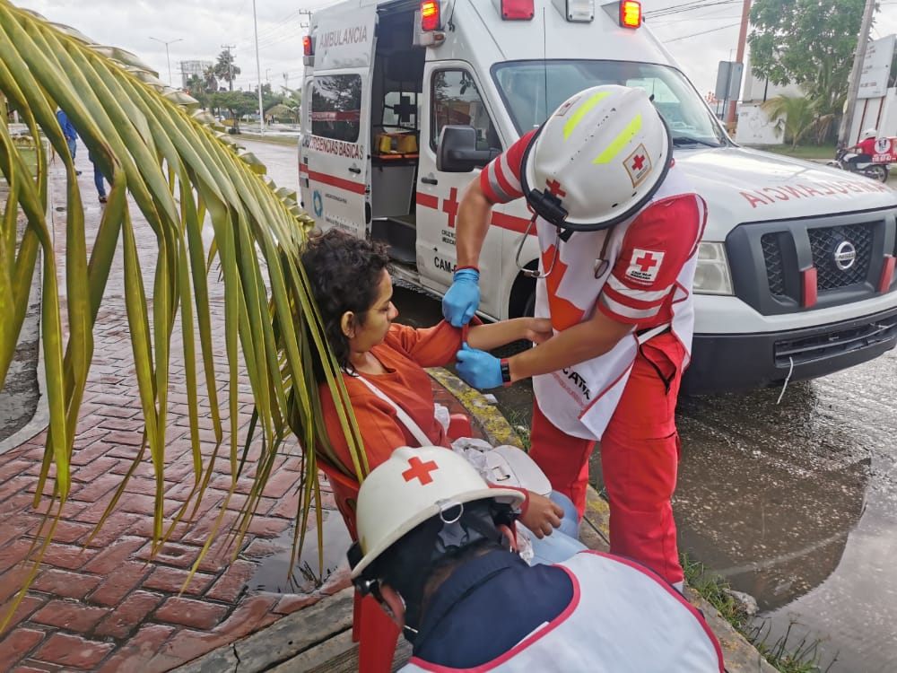 Una joven quien se identificó como Alejandra de aproximadamente 22 años de edad, resultó con dos lesiones profundas, una en la frente y otra bajo la barbilla las cuales sangraban demasiado, esto a consecuencia que al intentar cruzar la avenida isla de tris un motociclista la arrollara y éste se diera a la fuga dejando a la joven ensangrentada.