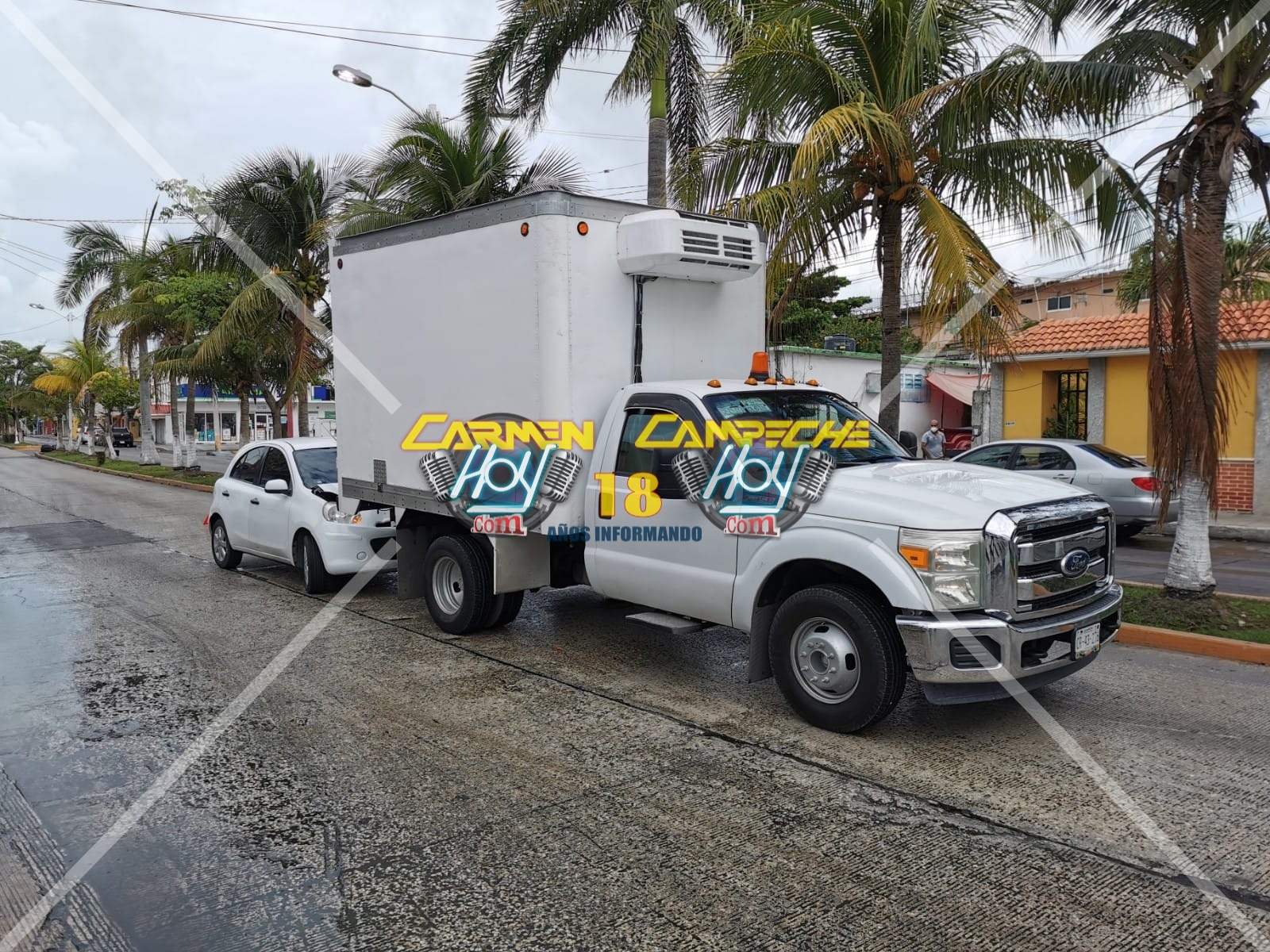De 3 toneladas y media de la marca Ford, color blanco con matrícula de circulación CR-43-276 del estado de Campeche, afortunadamente a la camioneta no le pasó nada más que unos cuantos rasguños en pintura, pero por otro lado el vehículo particular terminó con todo el frente dañado.