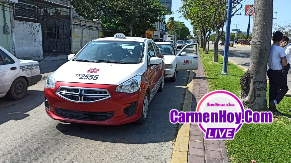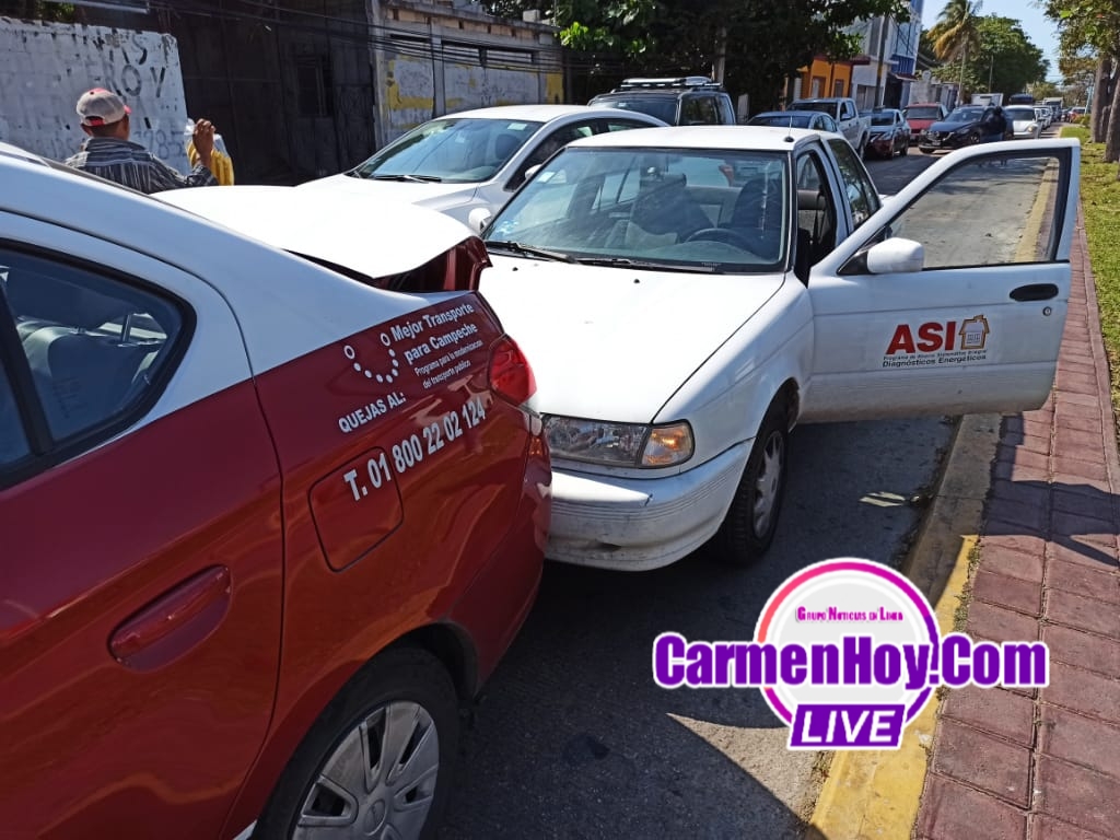 Un taxi marcado con el número económico 2555 y un vehículo particular de la marca Tsuru perteneciente a la compañía ASI Diagnósticos energéticos tuvieron un percance vehícular.