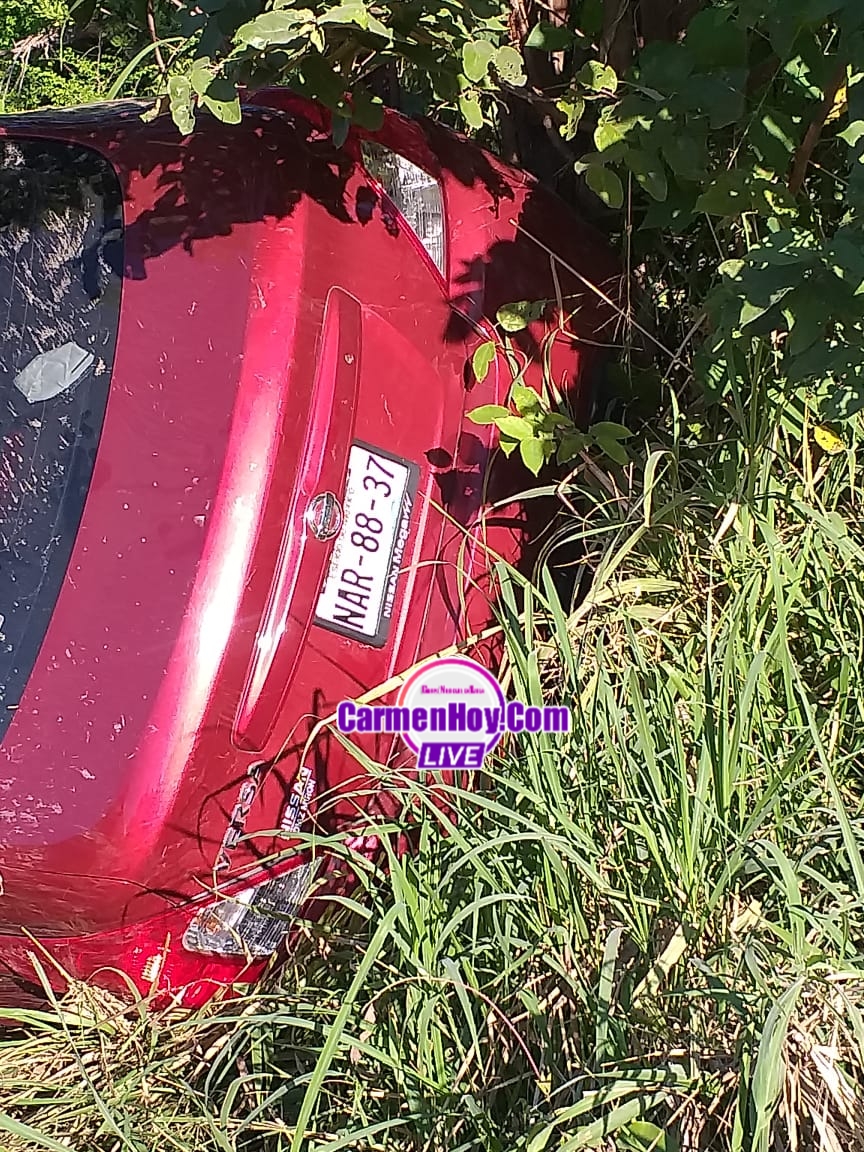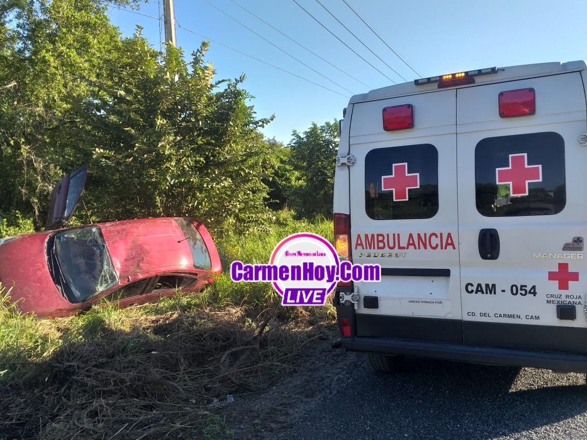 Con daños materiales de mayor cuantía y volcado sobre su costado izquierdo, es como la mañana de este viernes acabó un automóvil que circulaba sobre la carretera federal 180 tramo Atasta- San Antonio Cárdenas, por fortuna en el lugar no hubo personas lesionadas de gravedad, más golpes menores y un cuadro de crisis nerviosa por parte del conductor.
