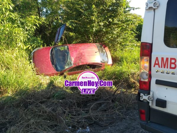 Con daños materiales de mayor cuantía y volcado sobre su costado izquierdo, es como la mañana de este viernes acabó un automóvil que circulaba sobre la carretera federal 180 tramo Atasta- San Antonio Cárdenas, por fortuna en el lugar no hubo personas lesionadas de gravedad, más golpes menores y un cuadro de crisis nerviosa por parte del conductor.