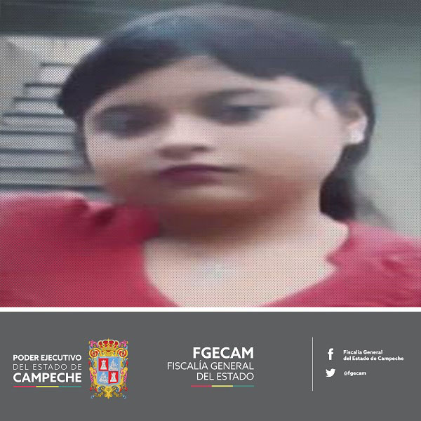 La Fiscalía General del Estado de Campeche (FGECAM), solicita el apoyo de la ciudadanía para que aporten datos que conlleven a la localización de Sheila Rubí Ocaña Morales, quien desde el viernes 25 de septiembre salió de su casa ubicada en la colonia Independencia, en la Ciudad de Candelaria, sin que hasta el momento haya retornado.