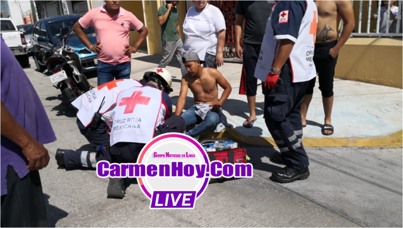 El accidente se registró sobre la avenida las Américas por calle José María Morelos y Pavón de la Colonia Francisco I Madero lugar hasta donde arribaron técnicos en urgencias para valorar al joven quien presentaba abundante sangrado en la herida del pie.