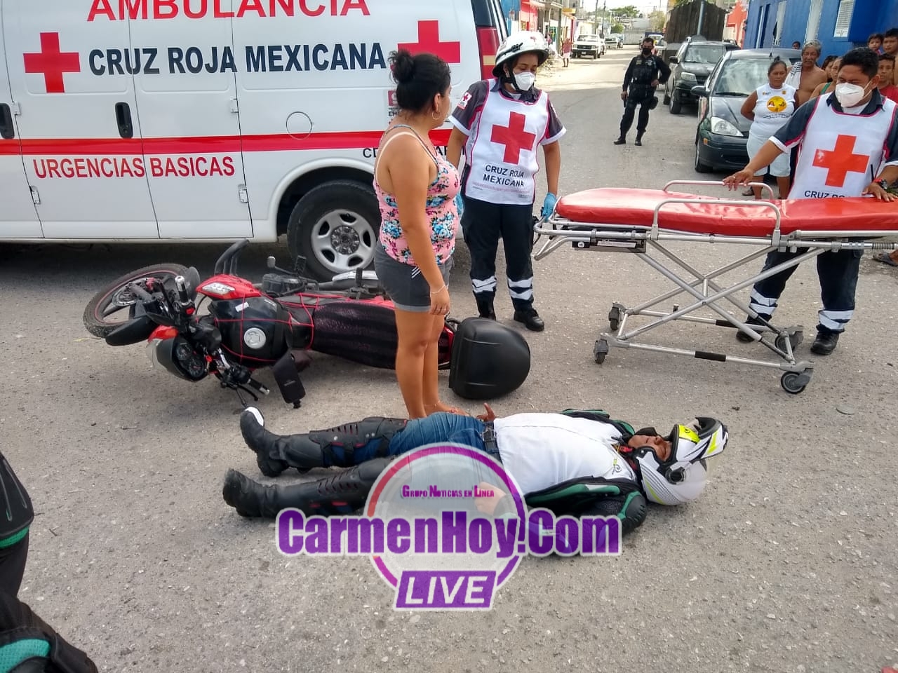 Creador de la Italika color rojo con negro terminó tendido en el pavimento semi inconsciente por lo cual vecinos que se encontraban en la zona se espantaron y rápidamente corrieron hasta dónde se encontraba el joven quién por fortuna logró reaccionar en cuestión de segundos pero por los fuertes golpes que llevó no podía pararse motivo por el cual fueron solicitado los servicios médicos de la Cruz Roja Mexicana.