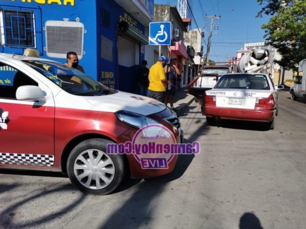 Por las prisas y andar a exceso de velocidad, unidades del servicio del transporte de taxi terminaron colisionando por alcance, dejando como resultado daños de regular cuantía y a un pasajero con un fuerte golpe en la nuca, los chóferes lograron arreglarse mediante las aseguradoras de los vehículos, moviendo rápidamente las unidades para evitar la presencia de los agentes de vialidad y tránsito municipal.